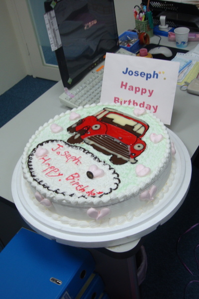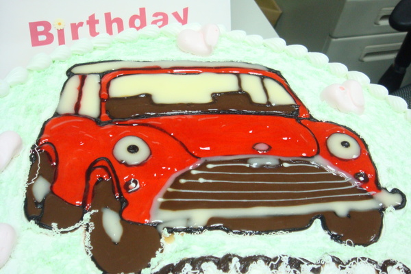 吼唷! 我們特地去訂做的蛋糕耶...是一台紅色老咪阿
